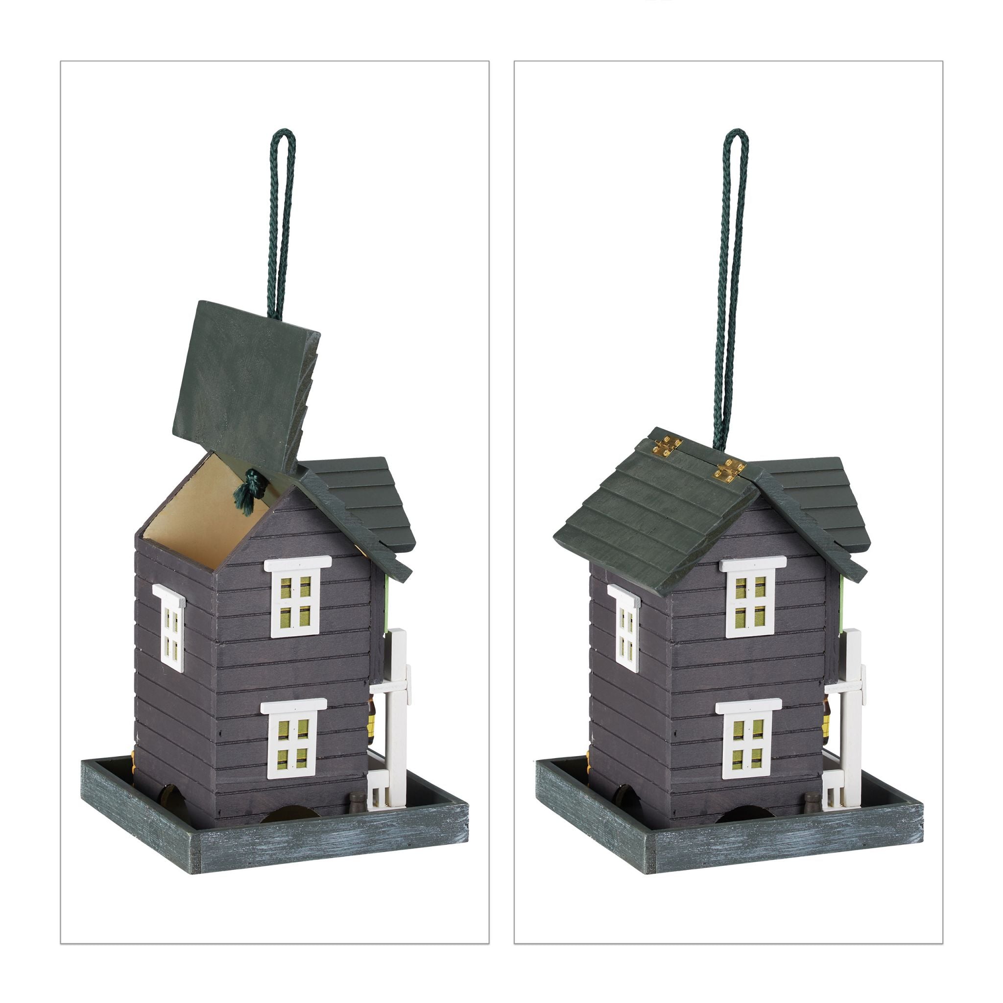 Provide wild birds with tasty food all year round with this decorative bird feeder. Hang the wooden house in the garden or place it wherever you like. Your feathered friends will certainly enjoy it. The detailed design of the wooden bird feeder is very special and is reminiscent of rural Scandinavian houses. You can open one half of the roof, making it easy to fill the house with food and clean it when necessary.