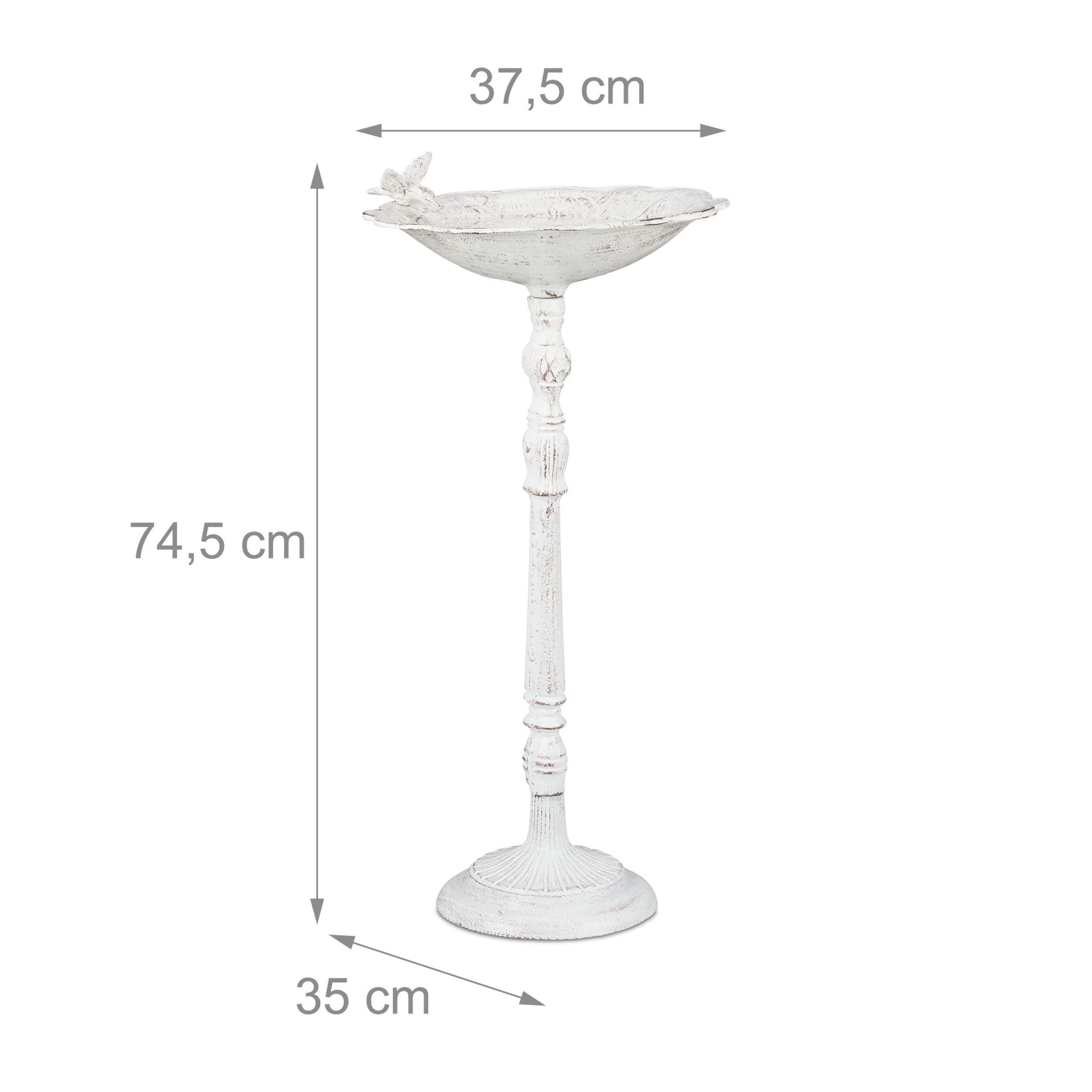 Do something good for the native wild birds in your garden with this bird bath and provide fresh water for blackbirds, tits and sparrows. The large bird bath with stand impresses with its trendy vintage design. The water bowl of the bird bath has a playful floral pattern. The water bowl for wild birds is made of solid cast iron and is stable and can be assembled in just a few simple steps.