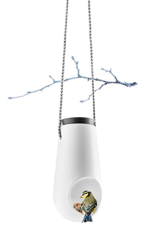 Bij koud weer kunnen tuinvogels zoals mezen en koolmezen zich gemakkelijk uit de rand van de hangende vogelvoederbak helpen eten. De feeder is eenvoudig bij te vullen door het deksel op te tillen en voer in de keramische feeder te gieten. De voederbak wordt geleverd met een stevig nylon koord om aan een boom, op het balkon of in de tuin te hangen. Materialen: keramiek, rubber, nylon Ontwerp door: Tools® Maat: Hoogte: 19,5 cm, Diameter: 5 cm
