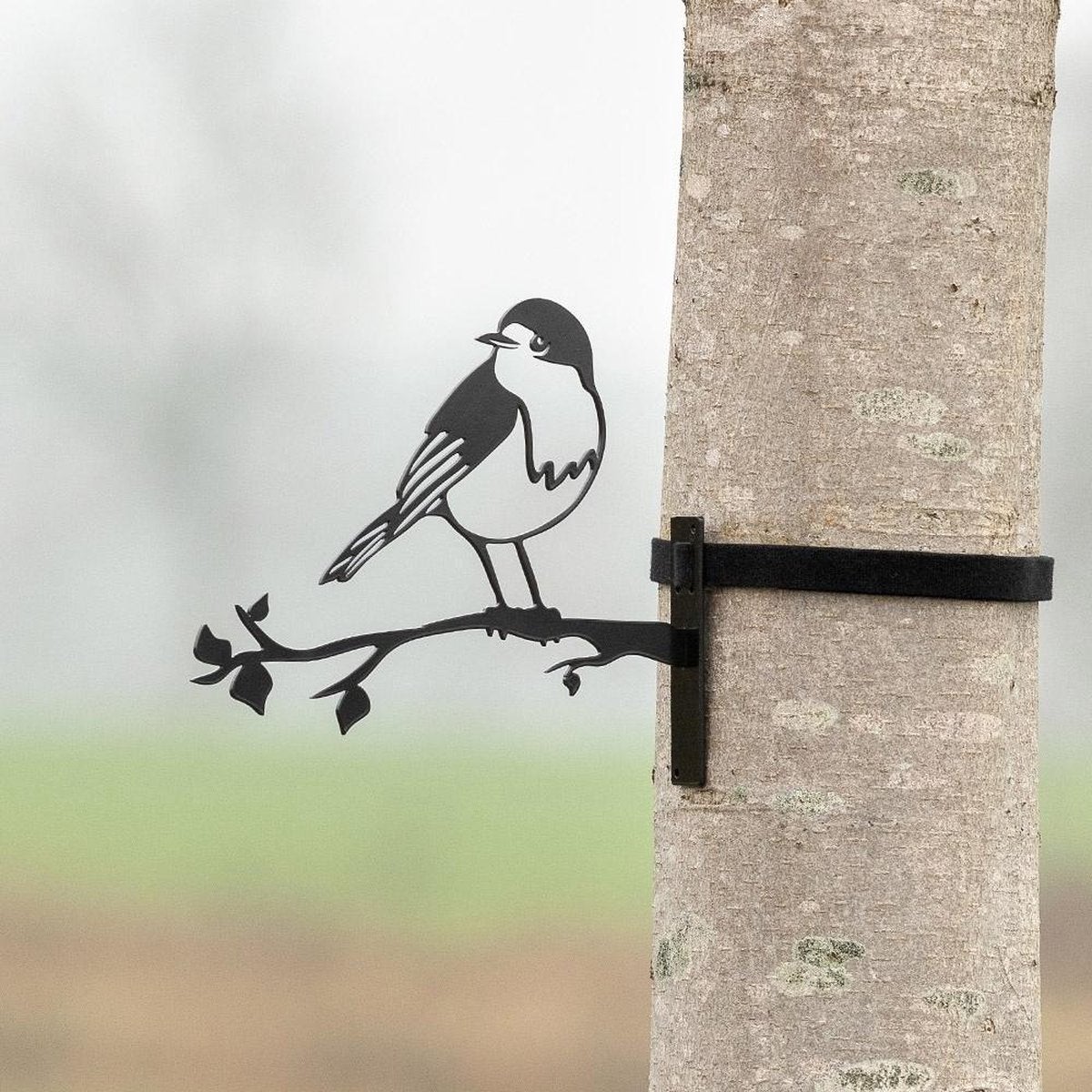 Versier uw tuin met deze metalen Roodborst. Hang hem op aan een boom of bij de deur. U kunt er ook een saaie schutting mee opfleuren. Gemaakt van metaal, afgewerkt met een poedercoating en een zwarte laklaag.