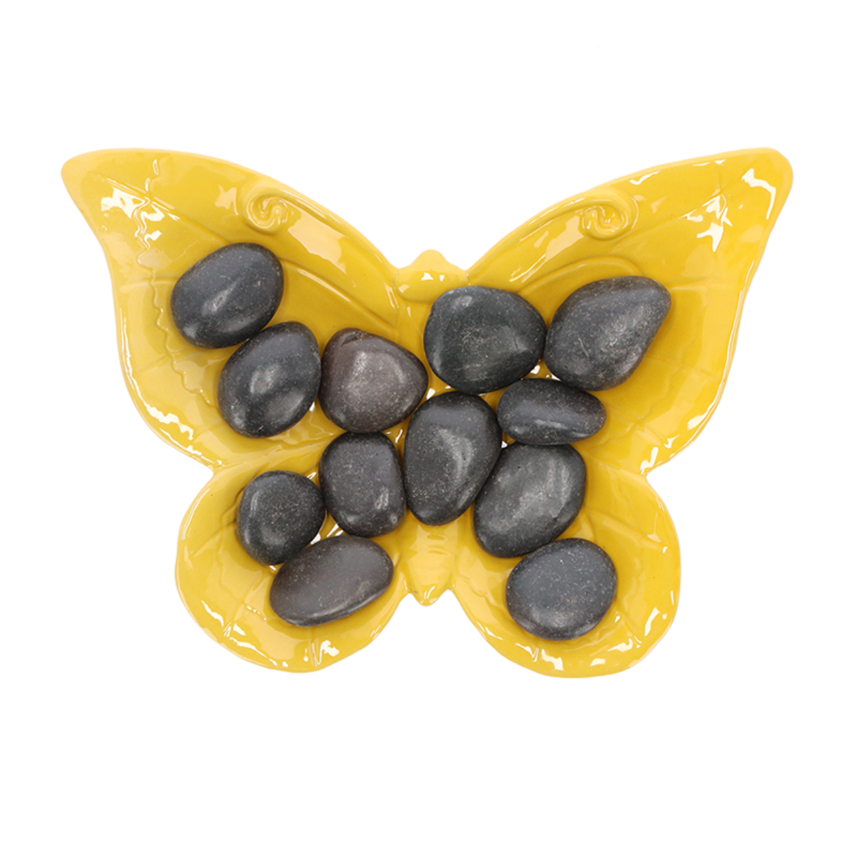 Drinkschaal voor bijen en vlinders in de vorm van een vlinder. Wilde bijen hebben water nodig om gekristalliseerde honing op te lossen, om honing te verdunnen bij de productie van larvenvoer, om af te koelen bij warm weer en voor een koel drankje op een warme dag. Deze set bestaat uit een drinkschaal en stenen zodat de bijen kunnen niet verdrinken (bijen kunnen niet zwemmen) en dus gemakkelijk toegankelijk voor vlinders.