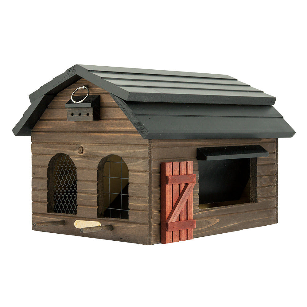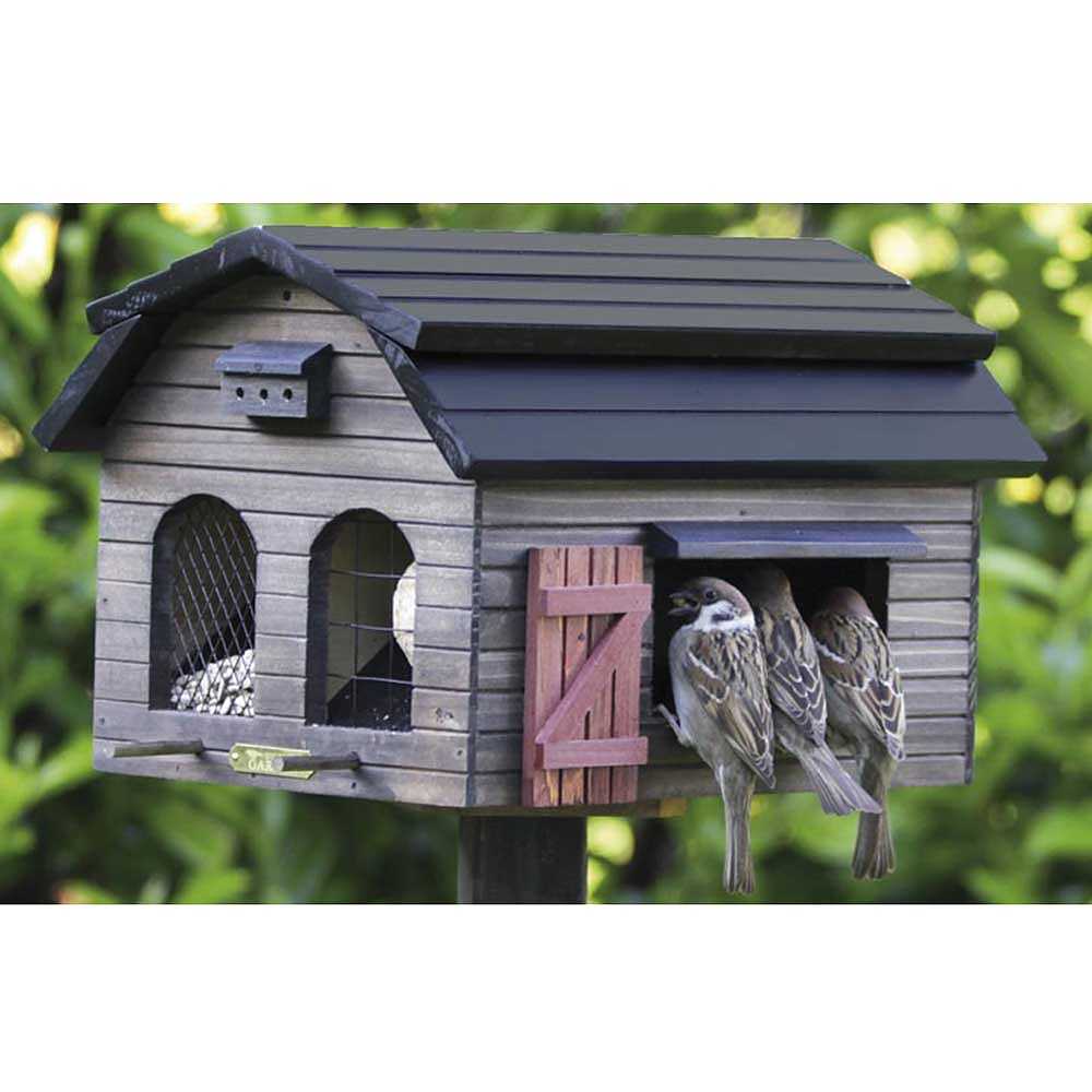 Dit Foderlada Bruin schuur voederhuis voor vogels van het merk Wildlife Garden heeft de vormgeving van een voederschuur. Door dit leuke ontwerp heeft u een zeer speciaal vogelvoederhuis. De voederschuur is gemaakt van FSC-gecertificeerd Lariks-hout. Door het Lariks-hout is dit voederhuis duurzaam en bestand tegen weersinvloeden.De voederschuur ziet er niet alleen voor u aantrekkelijk uit maar is tegelijk voor de vogels erg verleidelijk door de verschillende voederdispensers waarin plaats is voor wel vier soorten vogelvoer! U zult een tal van verscheidene tuinvogels naar uw tuin trekken door de diversiteit van vogelvoer. Door het unieke ontwerp van de voederdispensers blijft het vogelvoer beschermd tegen regen en andere weersinvloeden en krijgen grotere vogelsoorten zoals de kraai geen kans.Tevens creeërt u door de vrolijke vormgeving van dit voederhuis zowel in de zomer als in de winter een gezellige sfeer in uw tuin uiteraard ook te gebruiken op uw patio, terras of uw balkon. De voederschuur kan neergezet worden in de tuin of gemonteerd worden op een paal of zwenkarm. Ook is deze door het materiaal licht van gewicht. Het voederhuisje is eenvoudig te reinigen en bij te vullen met vogelvoer omdat het dak te verwijderen is. Doordat de vogel niet geheel in de voederschuur komt zal vervuiling van uitwerpselen minimaal zijn. Let op: Foderlada Bruin schuur voederhuis kunt u bevestigen op de bijpassende paal of zwenkarm. Deze paal of zwenkarm worden niet standaard meegeleverd maar kunt u in ons assortiment vinden en los bij bestellen. Gebruikersvoordelen: Bestand tegen weersinvloeden Lange levensduur Uniek ontwerp Aantrekken van verscheidene tuinvogels Eenvoudig te monteren Onderhoudsvriendelijk Geen last van kraaien en andere grotere vogelsoorten Gemakkelijk bij te vullen met vogelvoer* Technische gegevens: Merk Wildlife Garden Afmetingen 32cm. breedte x 25cm. lengte x 21,5cm. hoogte Gewicht 2100g. Materiaal FSC-gecertificeerd Lariks-hout weerbestendig Capaciteit voer 5l. Geschikt voor buiten ja Waterbestendig ja Kleur bruin//rood/wit/zwart Bevestigingsmateriaal inbegrepen ja schroeven, zitstokjes, voederramen Vogelvoer* inbegrepen nee *VogelvoerU vindt in ons Vogelvoer-assortiment u een ruime keuze uit soorten vogelvoer. Ook kunt u hier vogelvoer vinden wat specifiek op een vogelsoort is gericht, bijvoorbeeld de merel en het roodborstje.