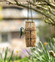 Deze notensilo met tray in trendy groen heeft een open structuur zodat de vogels gemakkelijk van het voer kunnen genieten. Door het deksel omhoog te schuiven is de silo eenvoudig te vullen en door de grote haak gemakkelijk op te hangen.