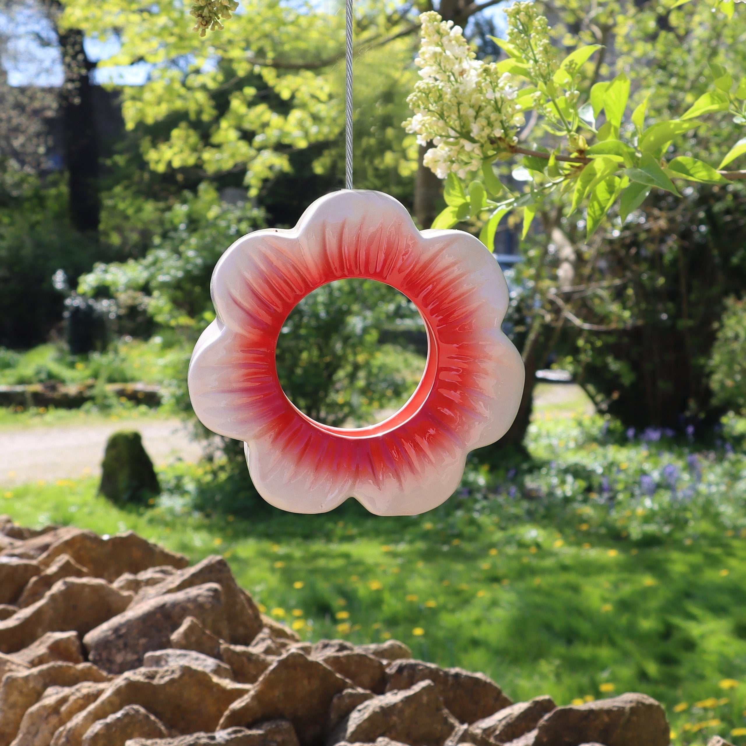Vul je tuin met een vleugje levendige schoonheid met de Wilde Klaproos Keramische Hangende Vogelvoeder. Geïnspireerd door de tijdloze elegantie van een wilde klaproos in volle bloei, is het opvallende geglazuurde keramische bloemontwerp van deze voeder een charmante toevoeging aan elke buitenruimte. Ideaal voor zowel vogelliefhebbers als tuinliefhebbers, biedt het zowel esthetische aantrekkingskracht als praktische voordelen, en nodigt het een verscheidenheid aan vogels uit om in je tuin te komen eten.