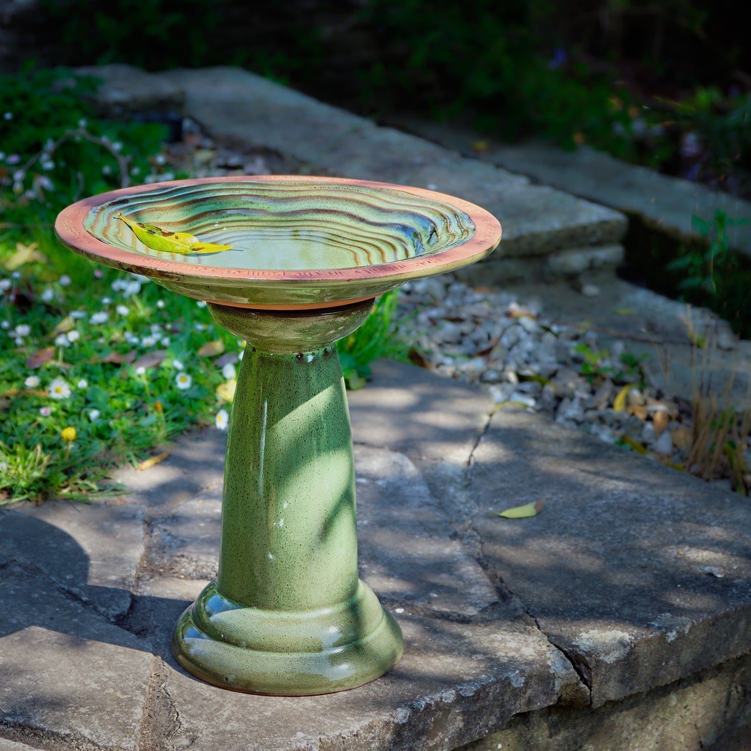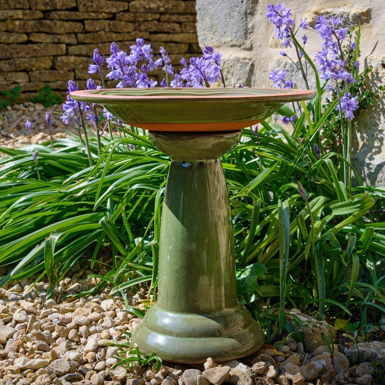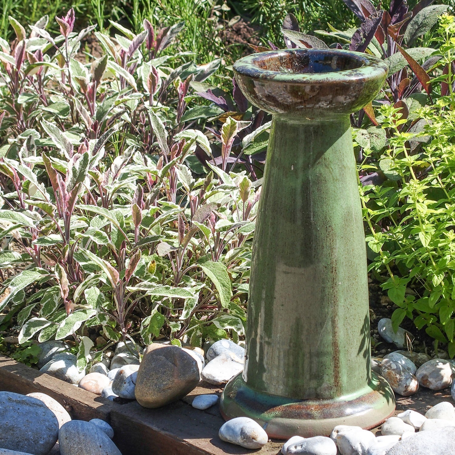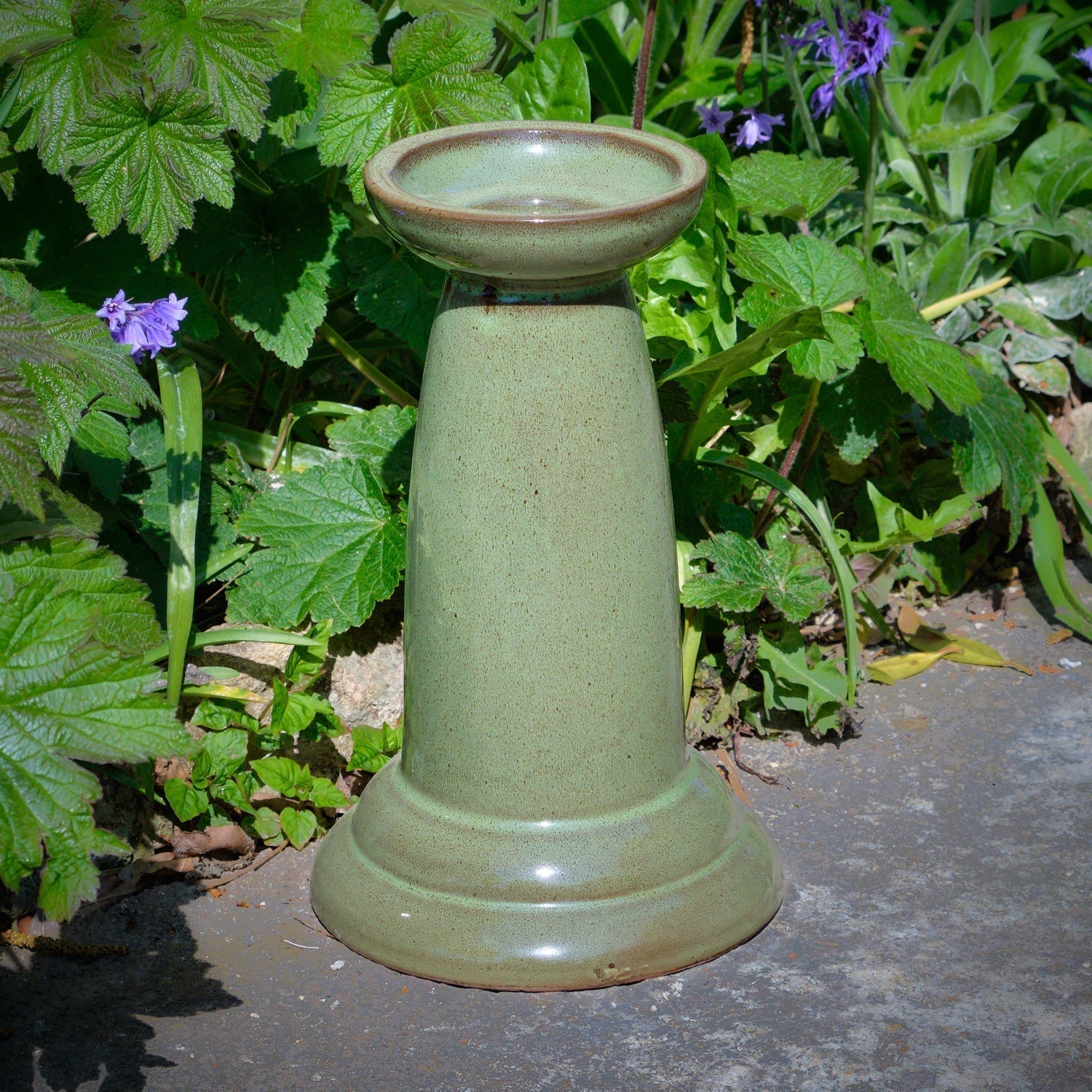 The Echoes Bird Bath Stand is a pedestal specially designed to be used instead of the glazed pot feet that come as standard with our Echoes Bird Bath. The stand is made in the same frost-resistant green glazed terracotta and is hollow down the centre.