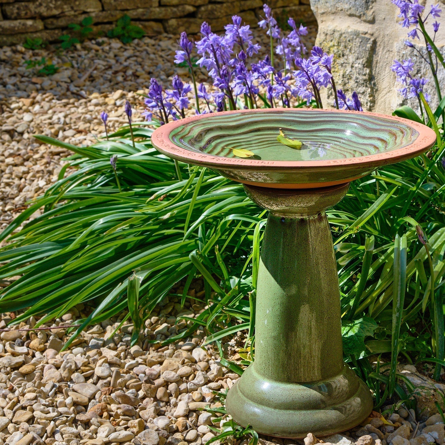 The Echoes Bird Bath is one of our top-selling designs. Made from frost-resistant glazed terracotta, it has a subtle green mottled colour.