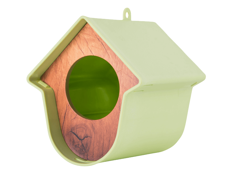 “Hallo, ik ben Evie!” Graag vertel ik iets over mezelf.Ik ben een pindakaaspothouder, maar dan net even anders. De vogels zijn dol op mij als er iets lekkers in me ligt. Zowel grote als kleine potten kun je in me kwijt door simpelweg het houten frontje te verwijderen, de pot erin te leggen en het frontje er weer op te drukken. De vogels help je het meest als je speciale vogelpindakaas voor me haalt. Gewone pindakaas is veel te zout. Maar je kunt ook ander voedsel voor vogels in me leggen. Denk aan een vetbol, pinda’s of zonnepitten. Zelfs een halve appel leg je snel en makkelijk in mij.Wat ook heel handig is aan mij is dat je me op heel veel plekken in je tuin of balkon kan hangen. Door middel van het bijgeleverde klittenband of met een schroef bevestig je me makkelijk aan bijvoorbeeld een regenpijp, horizontale- of verticale schutting of een muur. Maar je kan ook een ander leuk plekje voor me uitkiezen, want ik pas bijna overal. Eerlijk gezegd vind ik dat ik er best leuk uitzie. Ik heb mooie lijnen en je kunt ook nog eens kiezen in welke kleur je me wilt. Ik ben er in maar liefst 6 verschillende kleuren. Zo kan je de kleur kiezen die het beste bij je past. Evie, dat is mijn naam. Niet vergeten hè!