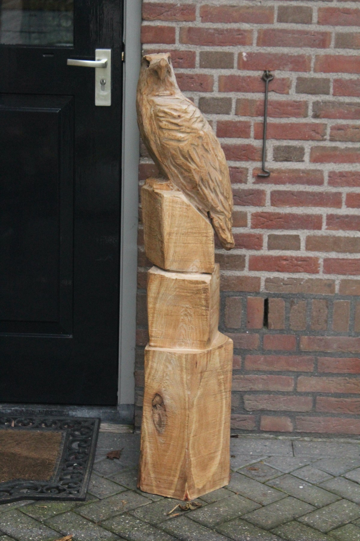 Houtgesneden hout arend op rots, exclusief handwerk, uit een stam gezaagde van Eiken. Robuust / uniek / bijzonder. In iedere tuin een plaatje!