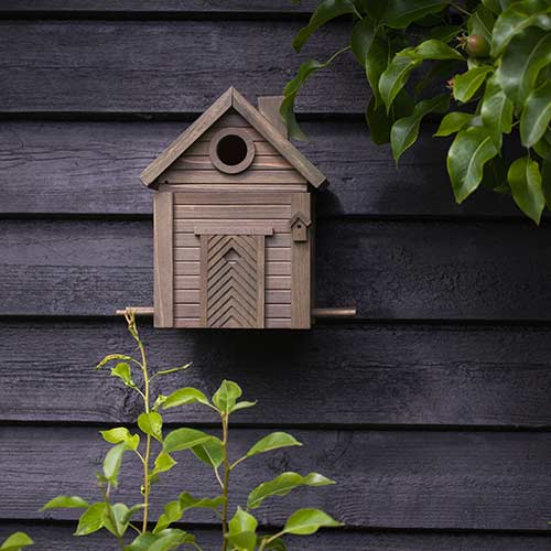 In het voorjaar is deze vogelvilla het perfecte onderkomen voor een groeiende vogelfamilie. Uitgerust met ventilatiegaten, is het binnenklimaat comfortabel in alle weersomstandigheden. De heer en mevrouw Pimpelmees kunnen er ook op vertrouwen dat hun welpen er gemakkelijk uit kunnen klimmen als het tijd is voor vliegtraining, dankzij de klimgroeven aan de binnenkant van het ingangs gat.